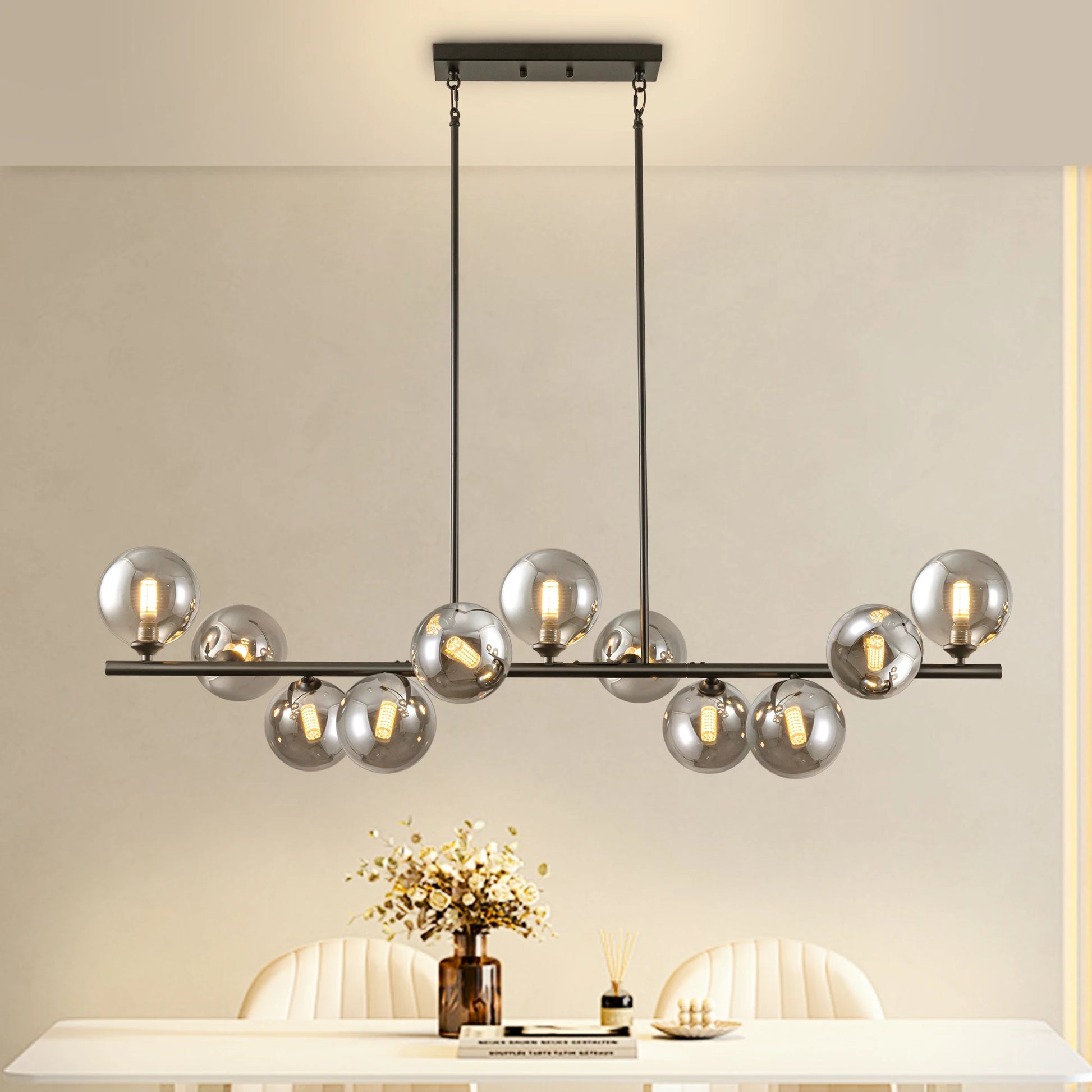 Brighten your dining room with a Bubble Chandelier that fuses glass artistry and iron craftsmanship into a striking, modern centerpiece.